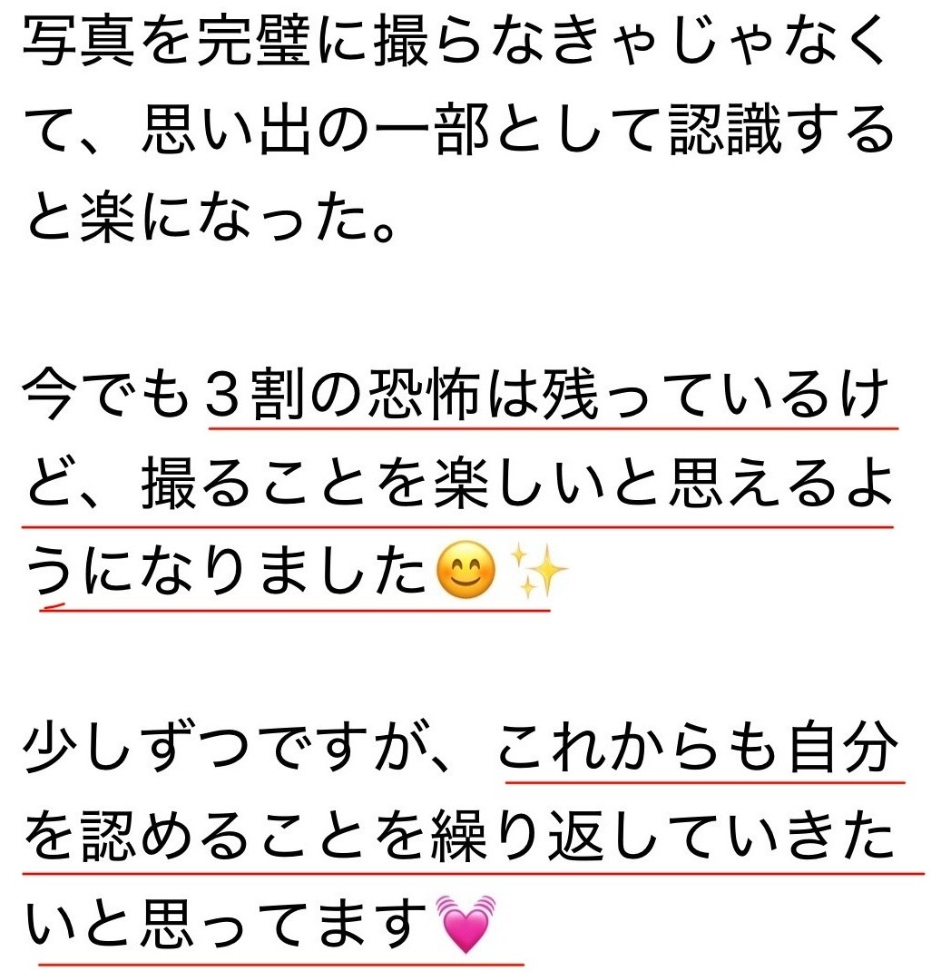 以前のように、その恐怖に飲み込まれることなく【撮ることを楽しいと思えるようになった】ことにフォーカスできるようになったんですね。